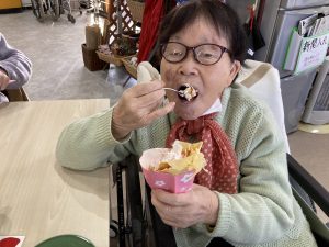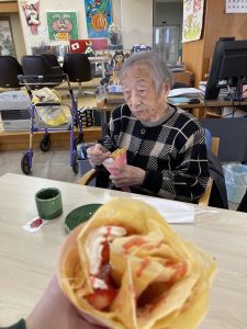 こんにちわー、本日は出張のクレープ屋が不定期に来られていると噂で聞きつけたので、急ではありますがゆうゆうライフのデイサービスへ行ってきました。